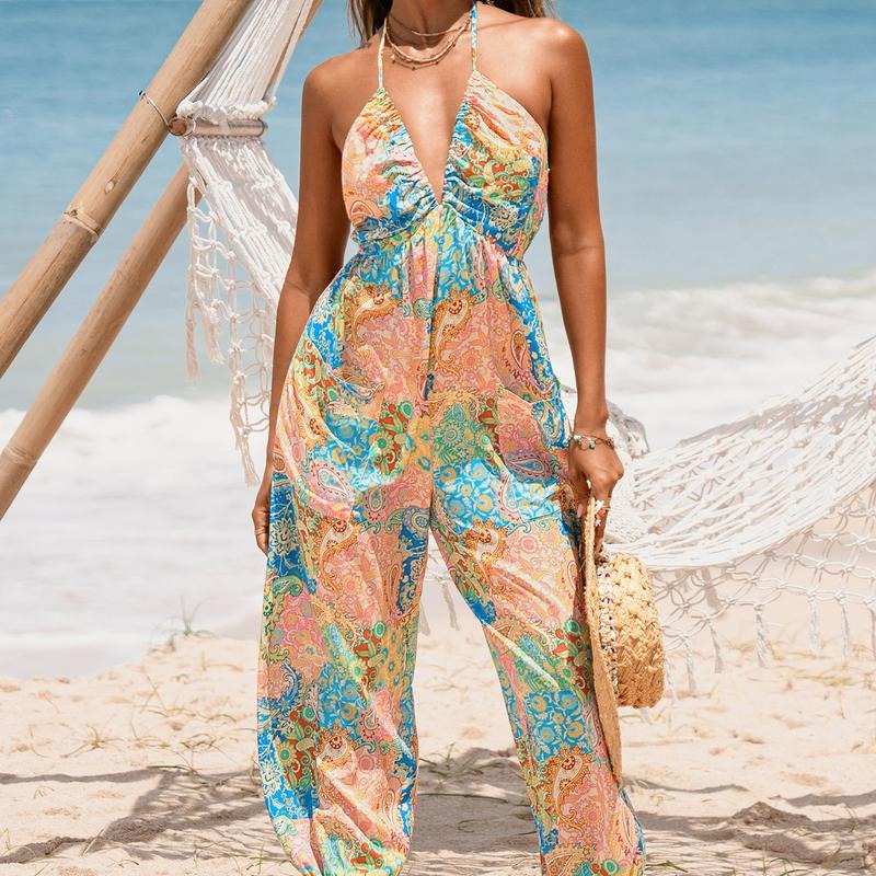 Make a bold fashion statement with this Plunge Halter Jogger Jumpsuit, featuring a plunging neckline and comfortable jogger-style pants. Whether you're dressing up for a night out or seeking a chic yet relaxed look, this jumpsuit combines style and comfort for a versatile and trendy ensemble.